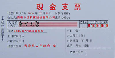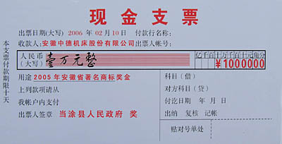 “中德機(jī)床”獲當(dāng)涂縣2005年度“創(chuàng)立品牌獎(jiǎng)”