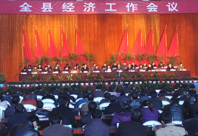 2006年2月10日上午,全縣經(jīng)濟(jì)工作會(huì)議在縣體育館隆重召開。這次全縣經(jīng)濟(jì)工作會(huì)議的主要任務(wù)是,全面貫徹落實(shí)中央和省、市經(jīng)濟(jì)工作會(huì)議和縣委十屆七次全體(擴(kuò)大)會(huì)議精神,認(rèn)真總結(jié)了2005年經(jīng)濟(jì)工作,表彰了各項(xiàng)先進(jìn),全面部署了2006年各項(xiàng)目標(biāo)任務(wù),進(jìn)一步統(tǒng)一全縣上下的思想認(rèn)識(shí),搶抓機(jī)遇,扎實(shí)若干,努力實(shí)現(xiàn)全縣經(jīng)濟(jì)又快又好地發(fā)展,構(gòu)建和諧當(dāng)涂,為順利實(shí)施“十一五”規(guī)劃開好局、起好步。縣長(zhǎng)操隆山作了全縣經(jīng)濟(jì)工作報(bào)告,縣委書記毛長(zhǎng)江發(fā)表了重要講話。縣委、縣人大、縣政府、縣政協(xié)、縣紀(jì)委、縣人武部負(fù)責(zé)同志,縣委委員、候補(bǔ)委員,縣紀(jì)委委員,縣人大常委、政協(xié)常委,曾擔(dān)任縣級(jí)實(shí)職的離退休老干部,各工委書記,各鄉(xiāng)鎮(zhèn)黨委書記、人大主席,鄉(xiāng)鎮(zhèn)長(zhǎng)和文書,各村(居委員)總支(支部)書記、主任和縣直各部、委、局、辦負(fù)責(zé)人、部分機(jī)關(guān)干部代表等共計(jì)2000多名干部職工參加了會(huì)議。