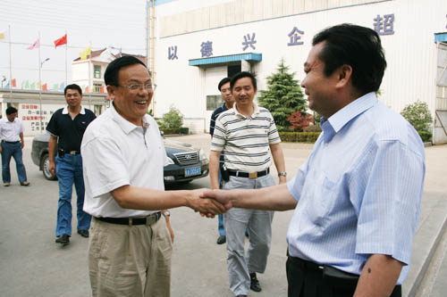 在鄭長玉董事長的陪同下,吳副書記等一行參觀了生產(chǎn)車間和成品車間并在公司會(huì)議室進(jìn)行了座談。在了解了我公司的發(fā)展歷程、生產(chǎn)銷售、人才培養(yǎng)等情況后,吳副書記等人對公司近年來所取得的經(jīng)營成績給予充分肯定。他指出,工業(yè)是民族經(jīng)濟(jì)的支柱,尤其是機(jī)械設(shè)備工業(yè)是基礎(chǔ)中的基礎(chǔ)。在競爭日趨激烈的市場環(huán)境下,企業(yè)競爭力的提升關(guān)鍵要是靠人才的培養(yǎng),關(guān)鍵是要靠科技創(chuàng)新能力的提升和不斷完善的服務(wù)體系。同時(shí)吳副書記還指出,企業(yè)要發(fā)展必須實(shí)施“走出去”戰(zhàn)略,參與國際經(jīng)濟(jì)競爭與合作,努力開拓國際市場,提高國際市場占有率,在國際分工與合作中取得有利地位。